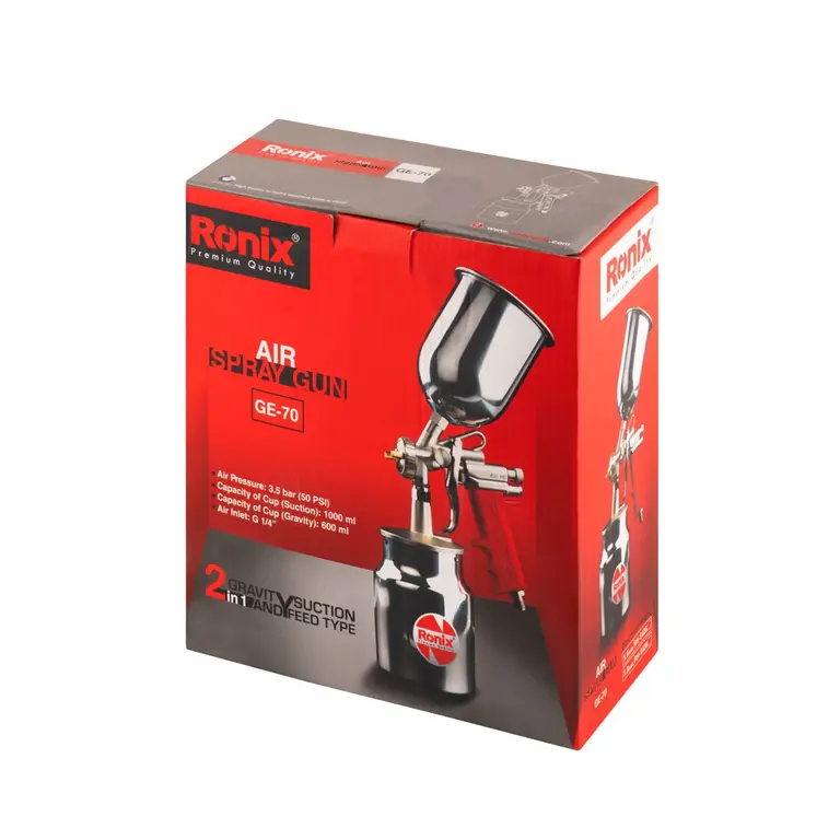 پیستوله بادی مدل RH-6426 رونیکس از آن دست ابزارآلاتی است که با استفاده از هوا، مقدار دلخواهی از رنگ یا سایر مایعات را روی سطوح مدنظر می پاشند. این ابزار که با نام پیستوله رنگ پاش نیز معروف است را می توان به عنوان یکی از بهترین گزینه ها برای انجام رنگ آمیزی یکنواخت روی سطوح مختلف به حساب آورد، زیرا در صورت تنظیم دقیق و استفاده صحیح می تواند رنگ را به صورت یکدست و یکپارچه روی سطح مورد نظر اسپری کند. این پیستوله حرفه ای از دوام و مقاومت بالا برخوردار بوده، ویژگی ای که از آن ها در برابر آسیب های احتمالی محافظت می کند.این پیستوله با قابلیت های کاربردی و طراحی ارگونومیک مانع از خستگی دست کاربر در ساعت های کار طولانی می شود. پیستوله رنگ پاش RH-6426 به قطعات ضدزنگ مجهز شده و در عین حال روکش مسی باعث افزایش دوام و طول عمر آن می شود. همچنین دارای بدنه یک تکه و ساخته شده از فلز و سوزن های ضد زنگ است که این ویژگی باعث افزایش طول عمر این محصول شده است. از دیگر ویژگی های مدل RH-6426 طراحی جمع و جور و ارگونومیک آن است و در عین حال این اطمینان خاطر را برای کاربران ایجاد می کند که پاششی یکدست را روی سطوح مدنظر خواهد داشت. به علاوه پیستوله بادی RH-6426 نازلی با سایز 1.6 دارد و از یک کاسه پایینی با ظرفیت 1000 میلی لیتر و یک کاسه بالایی با ظرفیت 600 میلی لیتر بهره می برد تا با عملکرد دوبل گرانشی و مکشی بهترین نتیجه را برای کاربر به ارمغان بیاورد.