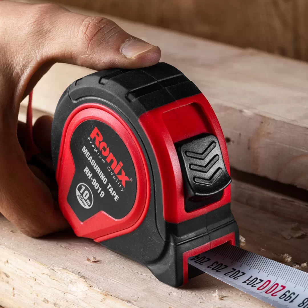 متر 10 متری روکشدار رونیکس مدل RH-9019 دارای تیغه از جنس کربن استیل مقاوم و فنر مستحکم برای استفادههای مداوم و طولانی است. طول این تیغه معادل 10 متر و عرض آن 25 میلیمتر است.