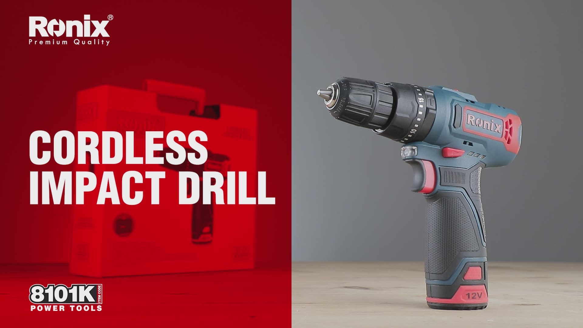 کیت دریل پیچ گوشتی چکشی شارژی رونیکس با مدل 8101K، انتخابی حرفهای با موتور قدرتمند و سه عملکرد مجزای سوراخکاری، پیچکاری و سوراخکاری چکشی است.