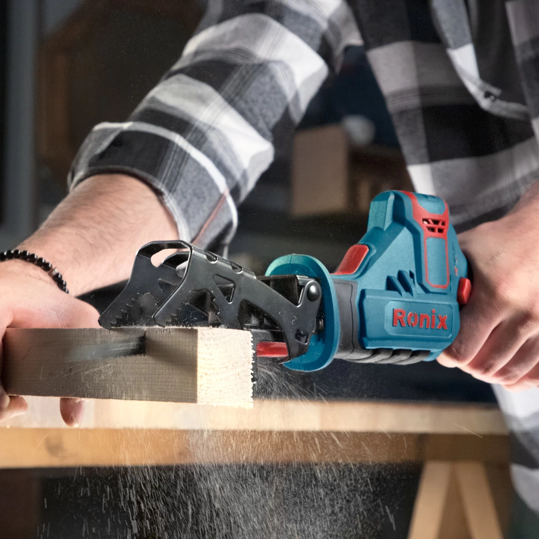 طراحی اره همهکاره یا افقیبر شارژی 8103K رونیکس و ساختار لولهایشکل آن، استفاده از این ابزار را در فضاهای با دسترسی محدود امکانپذیر میکند. این اره به یک موتور 12 ولت DC کوچک اما قدرتمند و با راندمان بالا تجهیز شده است. در این محصول شارژی، از باتری لیتیوم یون 12 ولت با ظرفیت 2 آمپرساعت به عنوان منبع تغذیه استفاده میشود. ابزارگیر این اره افقیبر، اتوماتیک بوده و تعویض سریع و آسان تیغه را برای کاربر امکانپذیر میکند. افزونبراین، در قسمت بالایی این ابزارگیر، میتوان پایهای را برای باغبانی و شاخهزنی نصب کرد.