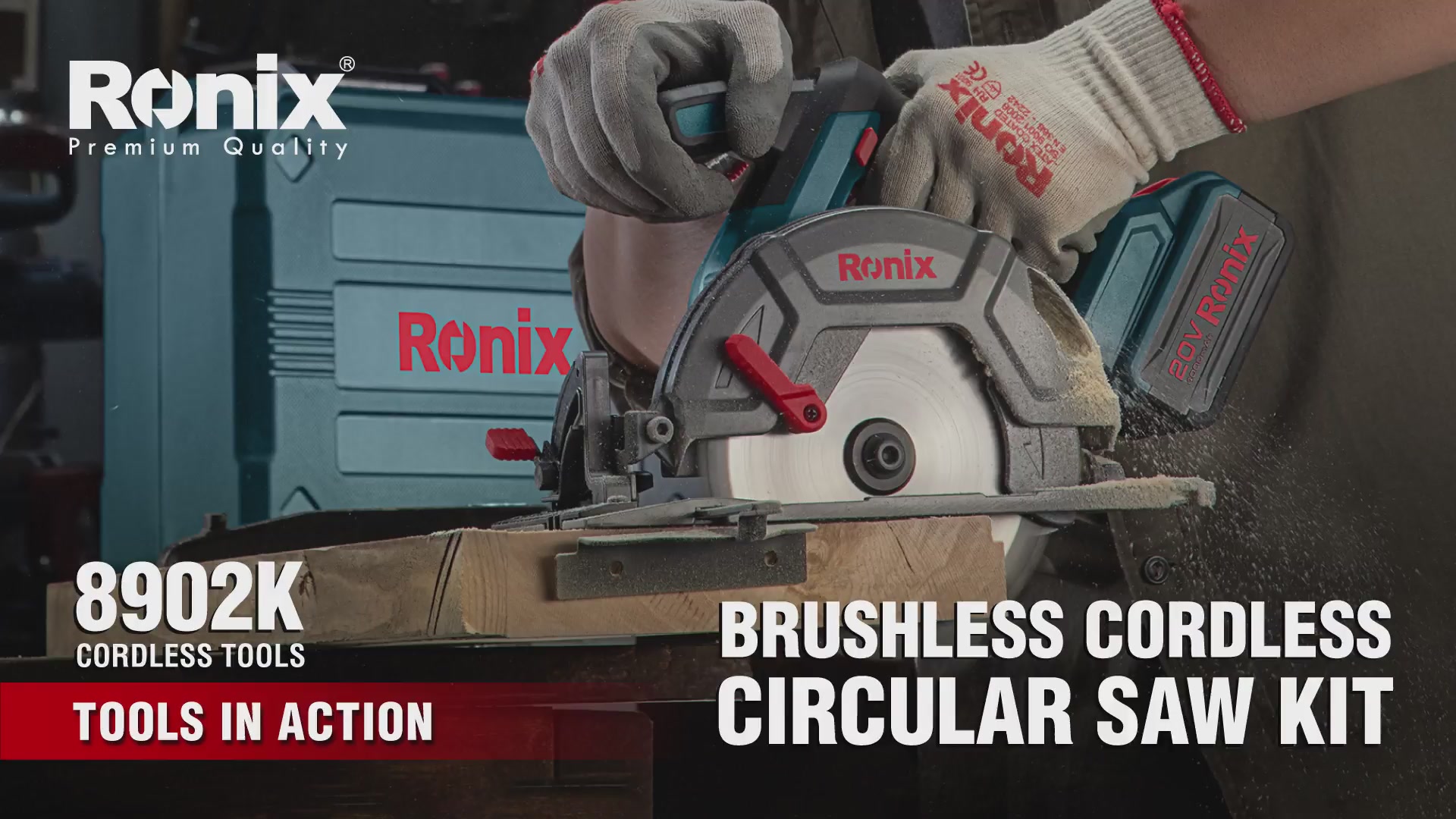 کیت اره گردبر شارژی 8902K رونیکس، به یک موتور براش‌لس DC 20 ولتی مجهز شده که سرعتی بالغ بر 5000 دور بر دقیقه دارد. این موتور، صفحه برش 165 میلی‌متری اره را تا عمق 57 میلی‌متر در زاویه صفر درجه و 41 میلی‌متر در زاویه 45 درجه حرکت می‌دهد. همچنین، این دستگاه با باتری‌های سری 89 رونیکس سازگار است.