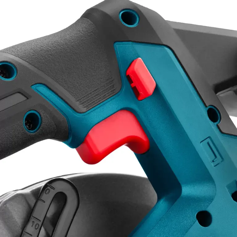 سوئیچ ماشه‌ای ضد غبار خاموش روشن، در زیر دسته قرار گرفته است. این اره گردبر مجهز به سیستم قفل شفت است تا تعویض صفحه برش برایتان آسان‌تر و ایمن‌تر شود.