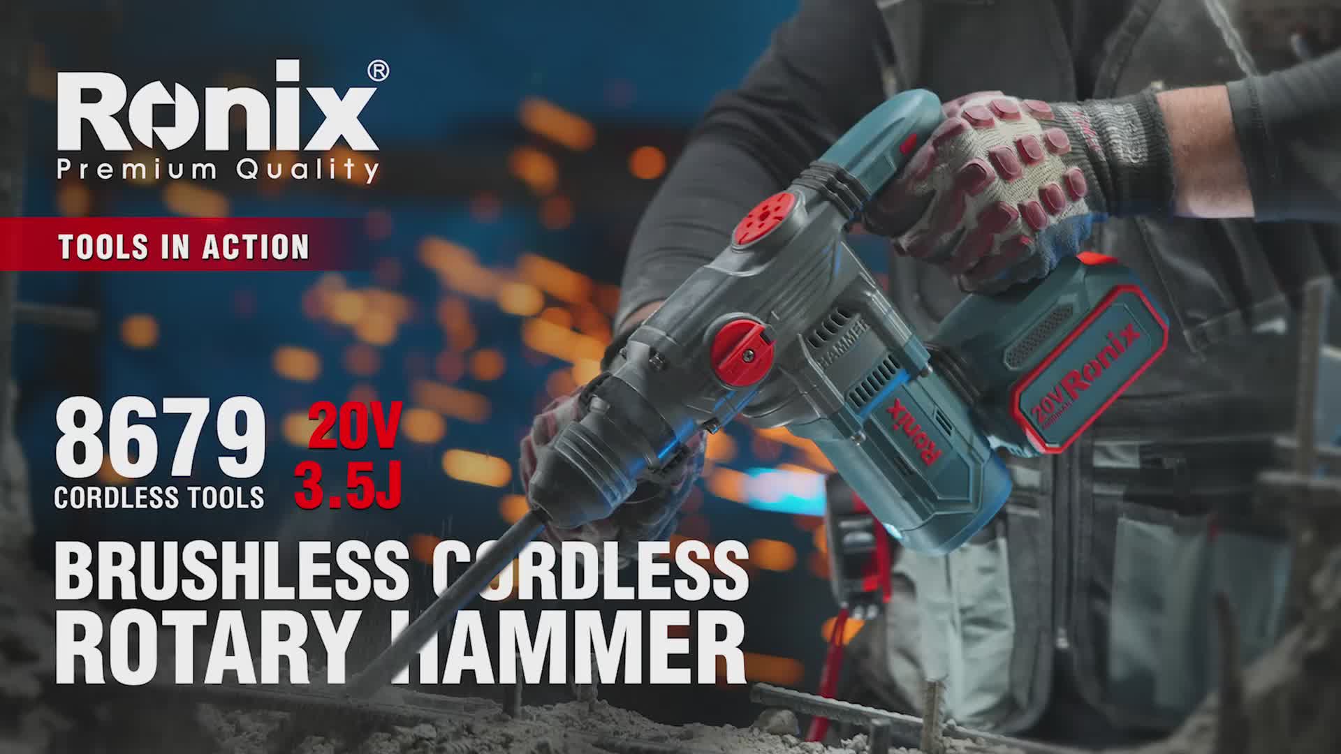 دریل بتنکن 8679 رونیکس، ابزاری حرفهای و همراهی مطمئن در پروژههای سوراخکاری، سوراخکاری چکشی، تخریب و خلاصکن است. باتری این دستگاه روی تمام ابزارهای سری 86 رونیکس قابل استفاده است.
