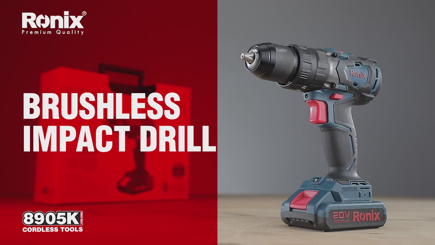 کیت دریل شارژی 8905K رونیکس: موتور براشلس ضد آب؛ بدنه ارگونومیک؛ سهنظام اتوماتیک و گیربکس صنعتی