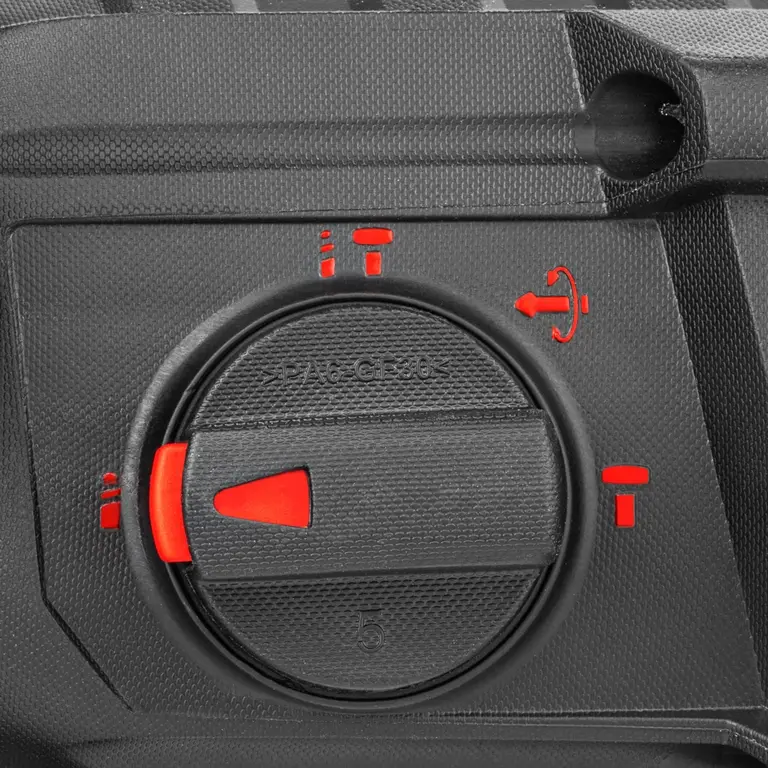 ابزارگیر چهارشیار (SDS-PLUS) ضد غبار 24 میلیمتری؛ با قابلیت تعویض آسان مته. ظرفیت سوراخکاری در فلز 13 میلیمتر و در چوب 30 میلیمتر است.