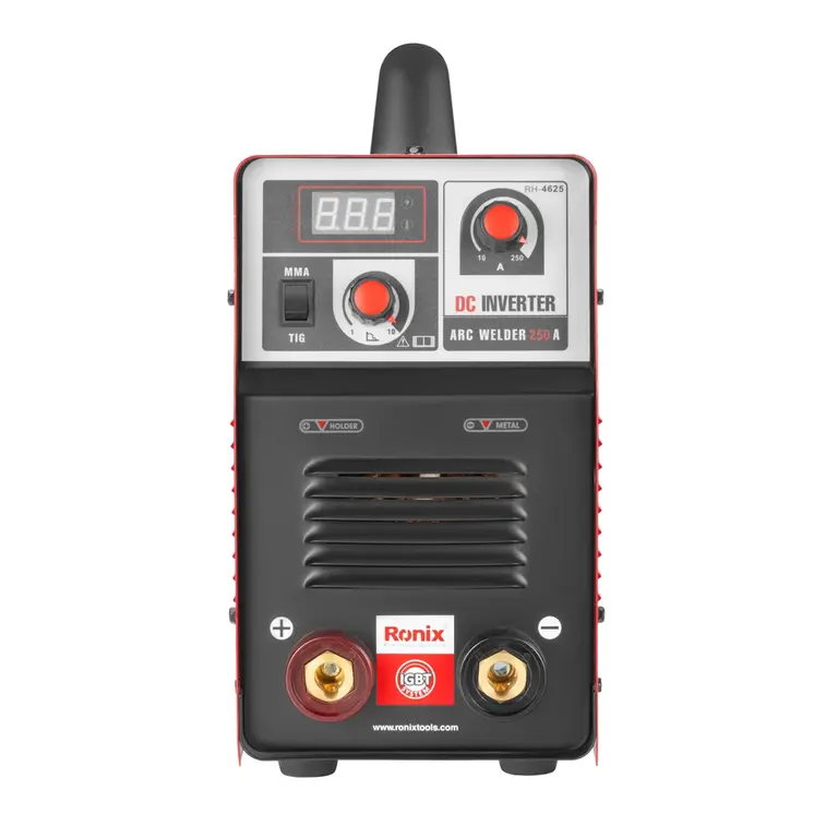 مشخصات ظاهریکسانی که از اینورتر جوشکاری استفاده می کنند و روزانه مجبور به جابجایی مکرر آن به نقاط مختلف هستند، به‌ خوبی می دانند که اگر حجم و وزن این دستگاه زیاد باشد، حمل و جابجایی آن به مکان های مختلف به خصوص در طبقات و ارتفاع چقدر مشکل و حتی خطرناک خواهد شد. پس باید به فکر خرید یک دستگاه جوش با حداکثر قدرت و آمپر خروجی و حداقل ابعاد باشند.رونیکس با در نظر گرفتن نیاز کاربران و سهولت در استفاده، اینورتر جوشکاری RH-4625 خود را با حداقل وزن ممکن طراحی، تولید و به بازار عرضه کرده است. این محصول که با وزنی حدود 11 کیلوگرم در اختیار شما قرار می گیرد، دارای طراحی منحصربفرد و کاربرپسندی است و عملکردی فوق العاده را به شما ارائه می دهد. بدنه مستحکم این دستگاه در برابر ضربات احتمالی مقاوم است و عمری طولانی را برای اینورتر شما به ارمغان می آورد. رونیکس همچنین به حمل آسان و راحت دستگاه توجه کرده و به همین جهت آن را به یک دستگیره مقاوم مجهز کرده است تا کاربران با خیالی آسوده آن را با خود به مکان های مختلف حمل کنند.وجود نمایشگر دیجیتال آمپر بر سطح بدنه جهت تنظیم دقیق جریان و نمایش خروجی واقعی دستگاه و همین طور وجود قابلیت تنظیم میزان قوس الکتریکی یا Arc Force از دیگر مشخصات ظاهری اینورتر RH-4625 هستند که باعث می شوند تا عملیات جوشکاری با دقت بیشتری صورت گیرد.مشخصات فنینکته بسیار مهم در اینورتر جوشکاری RH-4625 استفاده از تکنولوژی روز دنیا IGBT است که موجب افزایش کیفیت جوش، نفوذ بیشتر، کاهش مصرف انرژی، کاهش چشمگیر مقاومت و مگنتیک قطعات و افزایش کارآمدی دستگاه می‌شود.RH-4625 رونیکس دارای سیستم جوشکاری TIG (جوش تنگستن)، محافظ جریان کوتاه خودکار منحصر به فرد و مکانیزم احتراق ساده با تولید جرقه کمتر می باشد که همه آنها باعث بهبود عملکرد دستگاه شما می شود.کارایی و عملکرد این اینورتر جوشکاری همچنین شامل ویژگی های بیشتری همچون استارت سریع و مکانیزم ضد چسبندگی می باشد که آن را برای جوشکاران تازه کار بسیار مناسب می کند. خاصیت Anti Stick یا همان ضد چسبندگی به سهولت کار با الکترودهای جوشکاری کمک می کند.از دیگر ویژگی‌های حائز اهمیت این محصول به تجهیز با سیستم قطع کن حرارتی جهت حفاظت از دستگاه در برابر افزایش دما می توان اشاره کرد. این سیستم که با نام ترموسوئیچ نیز شناخته می شود با بالا رفتن حرارت و اعمال فشار بیش از حد بر دستگاه توسط کاربر، به صورت خودکار آن را خاموش کرده، از داغ شدن و در نتیجه از رسیدن آسیب به قطعات داخلی جلوگیری می کند. سیستم محافظتی در این دستگاه برای ولتاژ بیش از حد، گرمای زیاد، جریان بالا و اضافه بار نیز جهت ایمنی جوشکاران و خود دستگاه جوشکاری ارائه شده است. همچنین سیستم Hot Start در این محصول از آسیب های ناشی از نوسانات برق جلوگیری می کند و طول عمر مفید دستگاه را افزایش می دهد.سایر ویژگی ها و متعلقاتبا استفاده از این اینورتر جوشکاری می توانید فولاد، آلومینیوم و سایر قطعات فلزی را به یکدیگر جوش دهید. اینورتر جوشکاری تاپ لاین RH-4625 از حداکثر ظرفیت ورودی 11 کیلو ولت آمپر، شدت جریان 250 آمپر و چرخه عملکرد 60 تا 80 درصد در دمای 25 درجه سانتی گراد برخوردار است که می تواند جوش هایی بی عیب و نقص ارائه دهد.این محصول دارای تعدادی قطعه و لوازم جانبی شامل انبر جوش و کابل 3 متری، انبر اتصال و کابل 3 متری می باشد که به همراه اینورتر در بسته بندی طراحی شده توسط رونیکس عرضه می شوند.