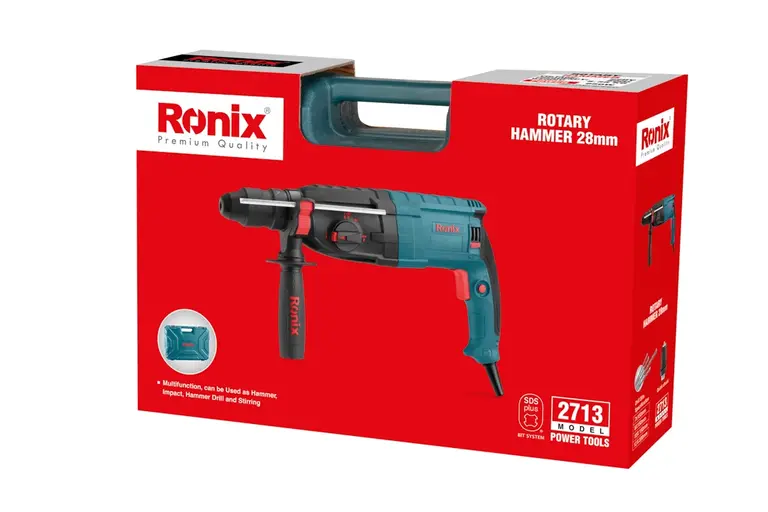دریل بتن‌کن 2713 رونیکس، مطابق با استانداردهای روز دنیا تولید می‌شود. بدنه‌ صنعتی و مقاوم در کنار طراحی ارگونومیک این ابزار، کار با آن را راحت‌تر می‌کند. این ابزار برقی قدرتمند، از یک موتور گیربکسی 850 وات بهره می‌برد که سرعتی بالغ بر 1280 دور بر دقیقه را ایجاد کرده و نرخ ضربه‌ آن BPM 5500 است.
