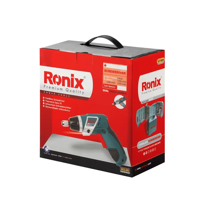 استفاده از پیچ گوشتی شارژی موجب افزایش چشمگیر سرعت و دقت پیچکاری در کاربریهای صنعتی و خانگی میشود. پیچ گوشتی شارژی 8536 رونیکس، با قابلیت تاشوندگی طراحی شده و میتوان از آن در دو حالت مستقیم و تفنگی استفاده کرد.