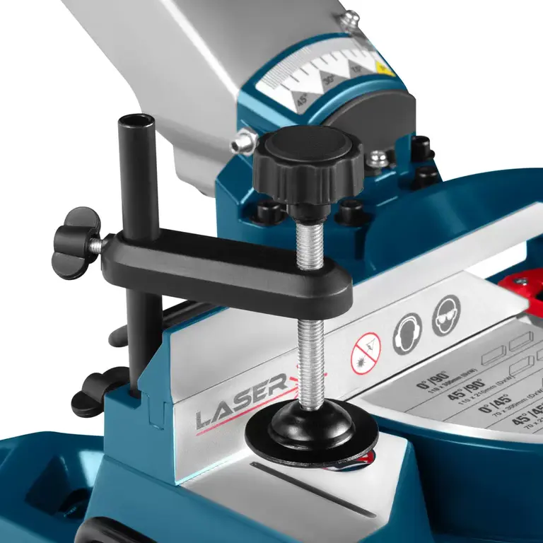سیستم قفل‌کن پیشرفته و سریع میز برش در 9 زاویه‌ی کاربردی به منظور انجام برش‌های بازویی؛ مجهز به مکانیزم قفل شفت جهت تعویض سریع و آسان صفحه برشی
