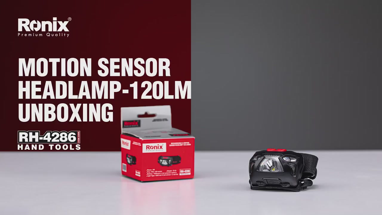 رونیکس با در نظر گرفتن نیازهای شما، انواع هدلامپ خود را با کارایی بالا و دوام عالی تولید و آن‌ها را روانه بازار کرده است. چراغ پیشانی شارژی RH-4286 یکی از آن‌ها است! در این ابزار روشنایی قابل شارژ، سبک‌وزن و پرکاربرد، 3 حالت مختلف نورپردازی قوی، ضعیف و چشمک‌زن برای پوشش‌دهی فعالیت‌های مختلف شما تعبیه شده است. این چراغ پیشانی از LEDهای SMD با روشنایی 120 لومن بهره می‌برد. افزون‌براین، با وجود حسگر حرکتی می‌توانید با حرکت دست در مقابل چراغ پیشانی، لامپ را بدون نیاز به فشردن دکمه پاور، روشن و خاموش کنید.