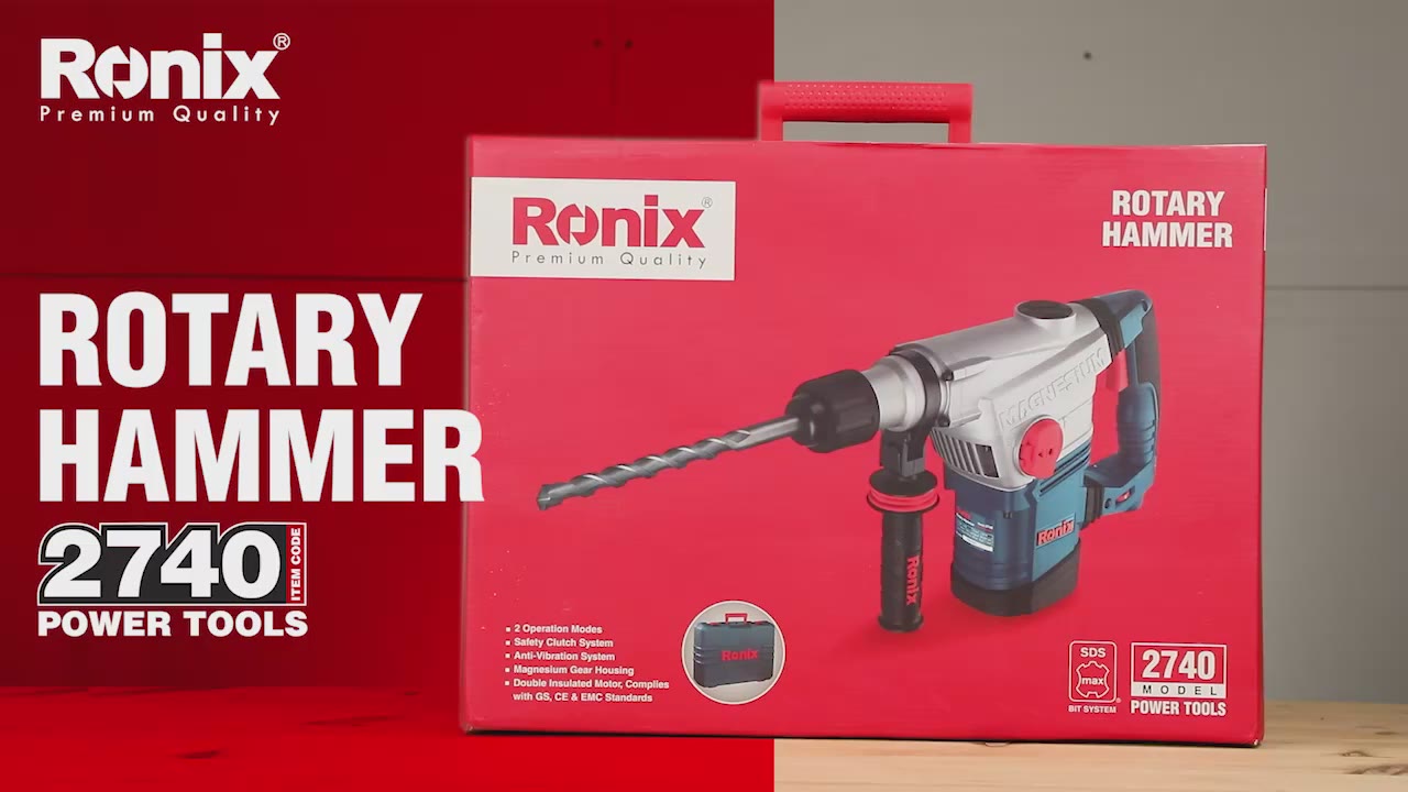 تنها ابزارهای تخصصی میتوانند بتن و سایر مصالح ساختمانی مانند گرانیت و سنگها را به روشی حرفهای و با حداکثر کارایی سوراخ کنند. بتنکن 2740 رونیکس با موتور 1250 وات، 2800 ضربه در دقیقه را با توان ضربهی 10 ژول ایجاد میکند. سیستم ضد لرزش دوگانه که روی دستهی اصلی این دستگاه تعبیه شده است، ارتعاش زیادی را جذب میکند تا همزمان با کاهش خستگی کاربر، راندمان و اثربخشی دستگاه نیز بیشتر شود.
