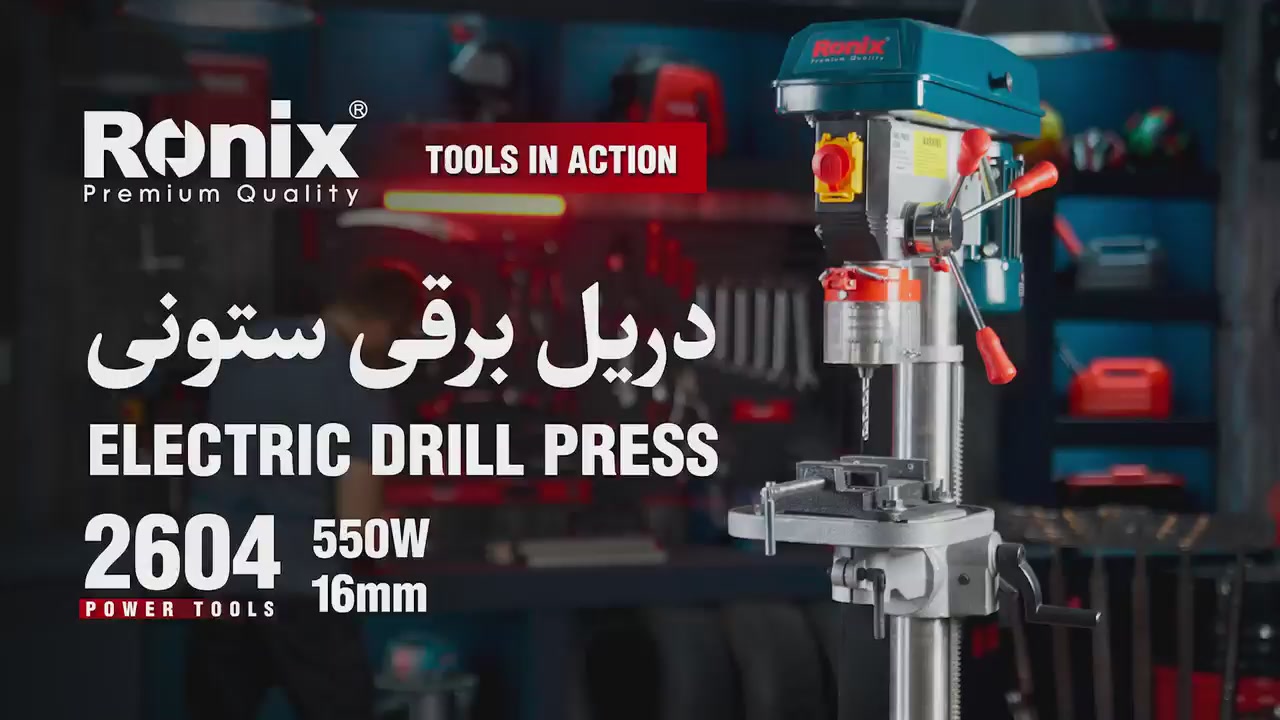 دریل برقی ستونی 16 میلیمتری 16 سرعته رونیکس مدل 2604، مجهز به موتور قدرتمند 550 وات بوده، عمود بر میز یا سطح زمین کارگاههای نجاری و صنعتی قرار میگیرد و به صورت ثابت یا رومیزی از آن استفاده میشود. این دریل، دقت بسیار بالایی را در عملیات سوراخکاری بر روی سطوح مختلف به کاربران ارائه میدهد.