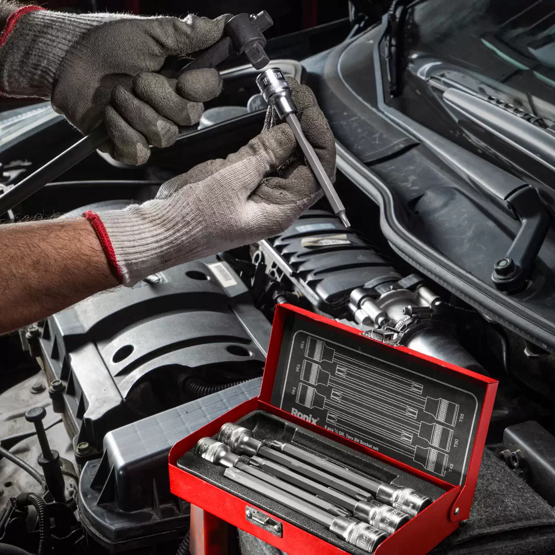 جعبه بکس 6 پارچه RH-2691 رونیکس، شامل 6 عدد آلن ستارهای و 6 عدد سوکت است که برای مصارف صنعتی، مکانیکی و تاسیسات طراحی و ساخته شده است. کیفیت بالای تکتک قطعات و طراحی حرفهای رونیکس باعث شده تا این جعبه بکس به انتخاب اول کاربران حرفهای تبدیل شود.