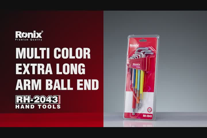 از مجموعه آچار آلن 9 عددی RH-2043 رونیکس برای تعمیر خودرو، تعمیر لوازم خانگی مانند یخچال، لباسشویی، ظرفشویی و … استفاده میشود. ست آلن الوان بلند رونیکس مدل RH-2043، با کیفیت فوقالعاده تولید شده و به بازار ابزار ایران و جهان عرضه میشود.