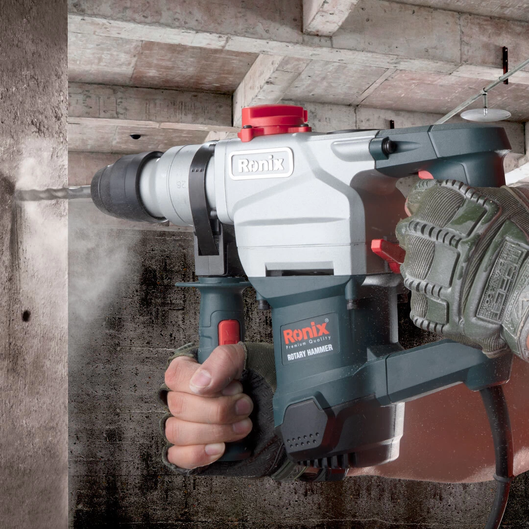 دریل بتن کن 2702 یک ابزار حرفه ای در صنعت ساخت و ساز است که در اجرای فرایند تخریب و همچنین سوراخ کاری به کار برده می شود. در واقع بتن کن ها در فعالیت های تخریب سبک و سوراخکاری روی مواد مختلف مانند بتن، سنگ و آجر کاربرد دارند.بتن کن 2702 رونیکس مجهز به موتور قدرتمند 1100 واتی است که سرعتی بالغ بر 950 دور در دقیقه و قدرت ضربه ای 4200 ضربه در دقیقه را فراهم می کند. این موتور قدرتمند امکان انجام سوراخکاری، سوراخکاری چکشی و تخریب را برای کاربر فراهم می آورد تا بتوانند بر روی چوب، فلز و بتن کار کند. بر این اساس ظرفیت سوراخکاری این دستگاه در چوب برابر 40 میلی متر، در فلز برابر با 13 میلی متر و در بتن معادل 28 میلی متر است.بتن کن برقی 28 میلی متری 1100 وات 2702 رونیکس دارای طراحی حرفه ای و وزن 4.8 کیلوگرمی می باشد که گزینه ای مناسب برای انجام کارهای طولانی مدت است. به علاوه دسته جانبی ارگونومیک این ابزار با قابلیت چرخش 360 درجه موجب کاهش خستگی دست کاربر در حین انجام کار می شود.از دیگر ویژگی های مدل 2702 بهره مندی از سه نظام 28 میلی متری حرفه ای SDS Plus با مکانیزم قفل خودکار است که این امکان را در اختیار کاربران قرار داده تا بالاترین قدرت را در حین انجام کار در اختیار داشته باشند. در ضمن این بتن کن 28 میلی متری به همراه عمق سنج، مته های مختلف و دسته جانبی ارگونومیک در کیف ضد ضربه BMC عرضه می شود.