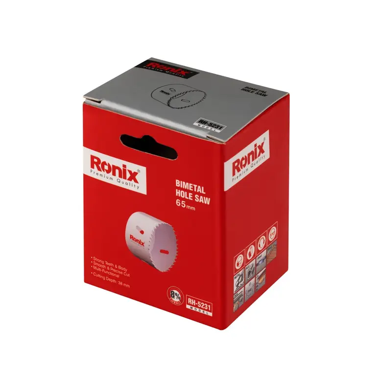 مته گردبر بایمتال مدل RH-5231 رونیکس قطعه ای مناسب برای برش های صاف و دقیق می باشد. این ابزار قابلیت نصب بر روی انواع دریل های ستونی، رادیال و … را داشته و در اندازه 65 میلی متر تولید شده است. لبه های گردبر بایمتال RH-5231 با بالاترین کیفیت و فناوری ساخته شده که افزایش دوام و بهبود عملکرد را به همراه دارد.بدنه این قطعه ساخته شده از جنس کبالت %8 و فولاد تیزبر HSS است که باعث حداکثر کارایی و ایجاد برش هایی دقیق و سریع تا عمق 38 میلی متر در قطعه کار می شود. از دیگر ویژگی های این گردبر قابلیت استفاده آن در مواد مختلف فلزی و آلیاژی با درجه سختی مختلف می باشد. در ضمن این ابزار در جعبه طراحی شده توسط رونیکس عرضه می شود.