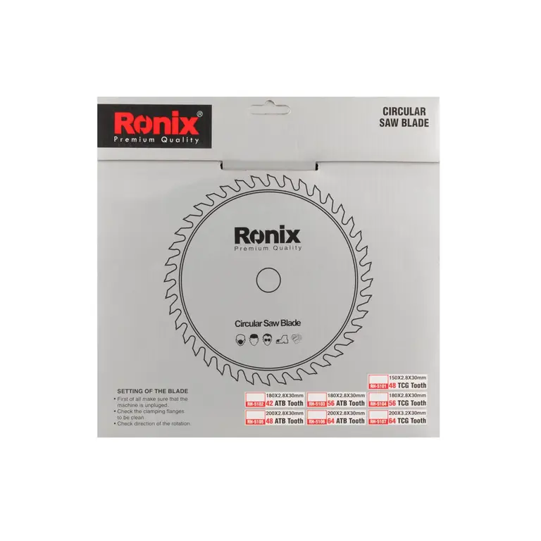 مجموعه تیغ اره الماسه رونیکس پیشرفته و منحصر به فرد بوده و بر اساس استاندارهای ATB(برای برش چوبهای سخت مانند نئوپان) و TCG(برای برش چوبهای چندلایه مانند امدیاف) انجام گرفته است. به علاوه دندانههای