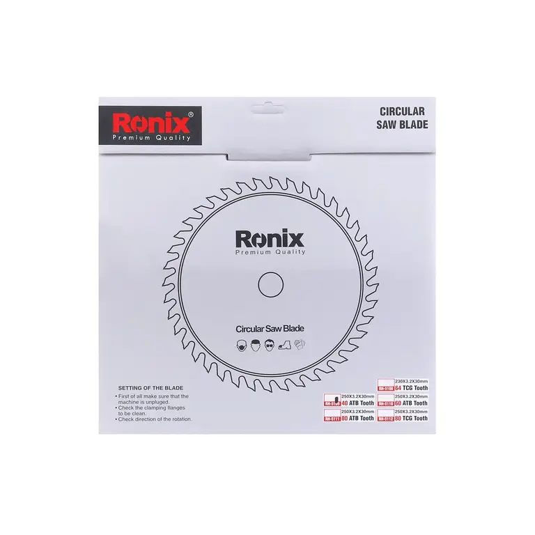 مجموعه تیغ اره الماسه رونیکس پیشرفته و منحصر به فرد بوده و بر اساس استاندارهای ATB(برای برش چوب های سخت مانند نئوپان) و TCG(برای برش چوب های چندلایه مانند ام دی اف) انجام گرفته است. به علاوه دندانه های