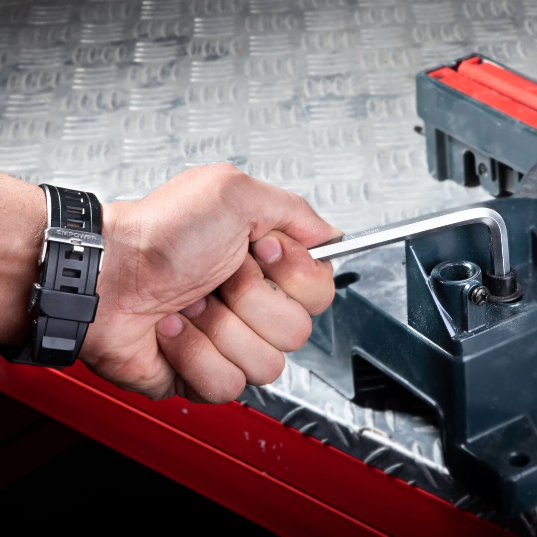حاوی جعبه پلاستیکی تاشو با طراحی ویژه و علامتگذاری شده برای دسترسی آسان به آچار آلن در اندازه مورد نظر.