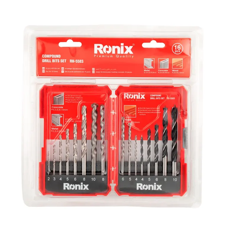 مجموعه مته چند منظوره رونیکس مدل RH-5583 یک مجموعه 16 عددی برای سوراخ کاری در فلز، چوب و بتن است. این مجموعه مته شامل قطعاتی با اندازه های مختلف است که سایزهای 4-5-6-8-10 میلی متر آن مناسب سوراخ کاری در بتن ، 2-3-4-5-6-8 میلی متر جهت سوراخ کاری در ورق های فلزی و مته های 4-5-6-8-10 میلی متر آن مناسب سوراخ کاری سطوح چوبی هستند.