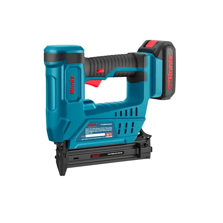 میخ‌کوب شارژی اسکا F30 رونیکس مدل 8619 با موتور دی‌سی 20 ولتی مناسب علاقمندان به انجام پروژه‌های خانگی، استادکاران صنعت چوب و تعمیرکاران عمومی است. این دستگاه شارژی که مورد نیاز هر نجاری است با متعلقات کامل در کیف BMC مقاوم به بازار عرضه شده است.