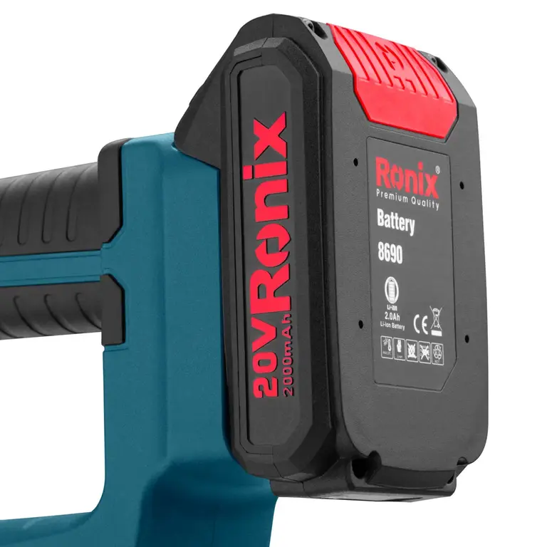 باتری به کار رفته در این دستگاه لیتیوم یون است که با ولتاژ 20 ولت کار می‌کند و ظرفیت 2000 میلی آمپر ساعت را داراست. این باتری در تمام ابزارهای شارژی سری 86 رونیکس قابل استفاده است.