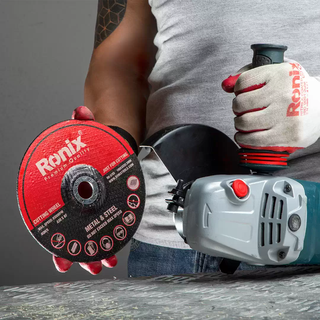 این صفحه قطری برابر 180 میلیمتر دارد و قطر سوراخ وسط آن نیز معادل 22.23 میلیمتر است. این سنگ برش رونیکس نسبتا ضخیم است و ضخامت آن به حدود 3 میلیمتر می رسد که آن را برای برش آلیاژهای بسیار سخت آهن مناسب میکند. با توجه به ضخامت و قطر این صفحه آهنبر، باید گفت که این محصول از استقامت و طول عمر بالایی برخوردار است.