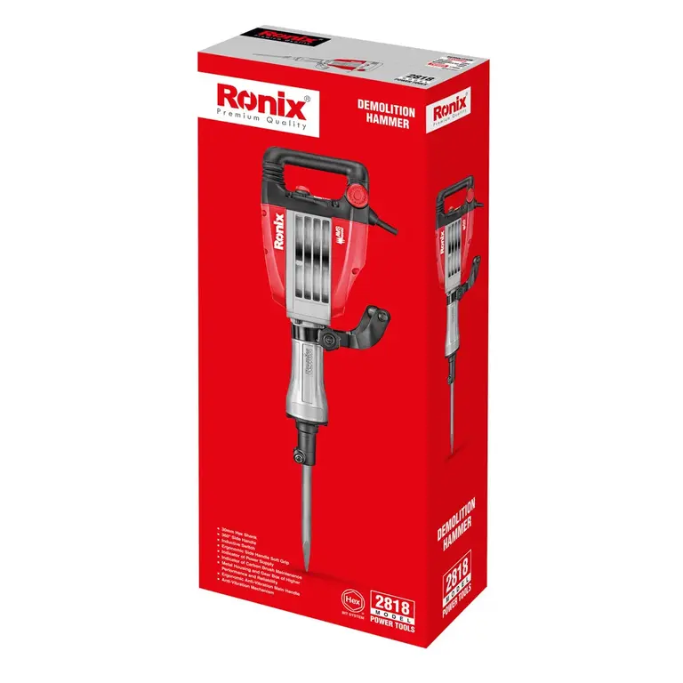 طراحی ارگونومیک بدنهی چکش تخریب 2818 رونیکس به صورت عمودی و به وزن 18 کیلوگرم، مانورپذیری فوقالعادهای را به این ابزار میبخشد. دستههای آنتیشوک آن نیز از خستگی دست کاربر در حین عملیات پرفشار تخریب جلوگیری کرده و فرآیند تخریب، سریعتر انجام میشود.