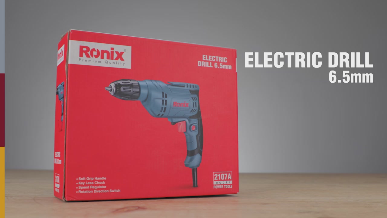 دریل برقی 2107A رونیکس، مجهز به موتور قدرتمند 400 وات، متشکل از آرمیچر و بالشتک‌های صنعتی و سرعت گردش 4300 دور در دقیقه است که قابلیت سوراخ‌کاری و بستن پیچ را در مواد چوبی و فلزی برای این دستگاه ایجاد می‌کند. سه نظام 6.5 میلی‌متری دو تکه و اتوماتیک این دریل، برای تعویض مته نیازی به آچار ندارد و در نتیجه، سرعت تعویض مته را افزایش می‌دهد. طراحی ارگونومیک بدنه و دسته‌ نیز موجب سهولت کاربرد و کنترل بهتر این دریل شده و از لغزش ابزار در دست افراد جلوگیری می‌کند. در نتیجه، دقت و تسلط کاربر هنگام کار بیشتر می‌شود.