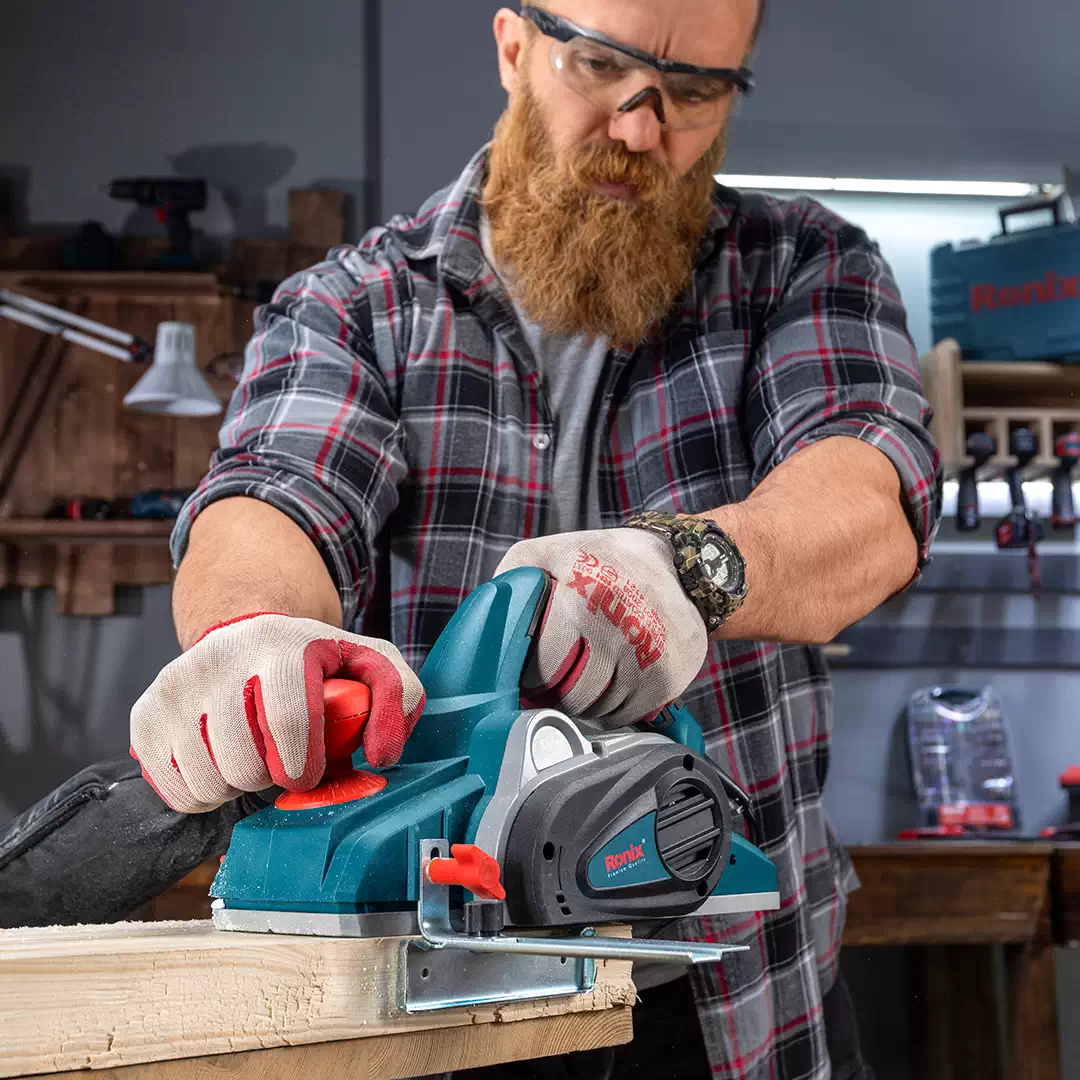 رنده برقی رونیکس 1200 وات یکی از بهترین گزینه ها برای صاف و صیقلی کردن سطح چوب در صنعت نجاری است. این رنده برقی کاربرد های فراوانی دارد، از جمله این که در تعمیر درب و اندازه سازی چوب در صنعت نجاری از آن استفاده می شود. رنده برقی رونیکس 1200 وات دارای موتوری است که با 1200 وات و 16000 دور در دقیقه کار می کند.امکانات و ویژگی های رنده برقی رونیکس 1200 واترنده برقی رونیکس 12000 وات با سرعت 16000 دور در دقیقه کار می کند و در نهایت چوب صاف و صیقل خورده ای برای شما به وجود می آورد.از دیگر ویژگی های رنده برقی Ronix 1200 W پایه محکمی است که دارد و باعث می شود که موقع کار ثبات بیشتری داشته باشد. این پایه که باعث ثابت ماندن رنده برقی می شود، ایمنی کار را افزایش می دهد .این دستگاه دارای صفحه درام فولادی است که طراحی آن به گونه ای انجام شده است تا بتوان به سرعت و البته بسیار راحت تیغه را تنظیم نمود.عملکرد رنده برقی رونیکس 1200 وات درست مثل رنده غیربرقی و دستی است. تنها تفاوت این است که تیغه ثابت با یک تیغه چرخان جایگزین شده است و می تواند سرعت کار را به شدت افزایش داده. در نتیجه زمانی که باید برای کار در نظر گرفته شود، بسیار کوتاه تر از زمانی خواهد بود که برای همان کار با رنده دستی در نظر گرفته می شود.اگر سطح کار حدود 110 میلیمتر باشد، عمق رنده بین 0 تا 3 میلیمتر و عمق رنده بغل بین 0 تا 14 میلیمتر می باشد. این ابزار کاربردی را به راحتی می توان روی کار جا به جا کرد و اگر کمی دقت کرده و تکنیک های ساده ای را رعایت کنید به راحتی برش هایی صاف خواهید داشت. در واقع این دستگاه برای رنده و صیقل دادن تخته های چوبی با سرعت بالا طراحی شده است و می تواند همه نیازهای کاربران را رفع کند.همچنین باید در نظر داشت که حتی اگر فقط قصد داشته باشید به میزان اندکی از سطح مورد نظر را رنده کنید، باز هم می توانید از این ابزار قدرتمند استفاده کنید.