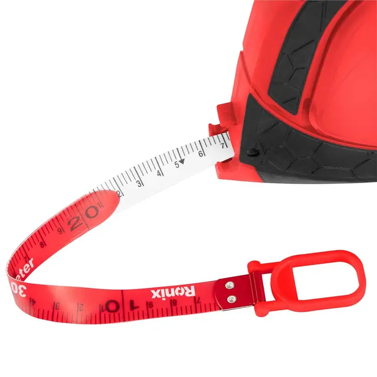 متر RH-9803 رونیکس مجهز به بدنه ای مقاوم در برابر ضربه است. نوار 30 متری این متر از جنس فایبرگلاس است که وزن آن را به طرز چشمگیری کاهش داده است و موجب شده است از مقاومت بالایی برخوردار شود. این متر مجهز به بدنه‌ مقاوم و ضد ضربه است که در برابر آسیب های ناشی از ضربات وارد شده مقاوم است. واحد اندازه‌گیری طول در این متر برحسب سانتی ‌متر است و در هر دو سمت نوار چاپ ‌شده است. این نوار با روکش PVC به منظور افزایش دوام و نیز قابلیت شستشو پوشیده شده است.طراحی این محصول به گونه ای است که بر روی بدنه آن یک دستگیره الاستیکی تعبیه شده که استفاده و حمل و نقل آن را آسان کرده است. از دیگر ویژگی های متر 30 متری فایبرگلاس RH-9803 قابلیت جمع شدن تیغه با سرعتی تا سه برابر انواع متر هاست که از طریق یک شاسی فلزی چرخشی صورت می گیرد. در انتهای تیغه این متر یک قلاب جهت آویزان کردن متر به منظور جلوگیری از سقوط و در نتیجه افزایش طول عمر تعبیه شده است. همچنین ارقام موجود بر روی تیغه از هر دو سمت قابلیت دیده شدن دارد که این ویژگی کار با این متر را بسیار آسان کرده است.
