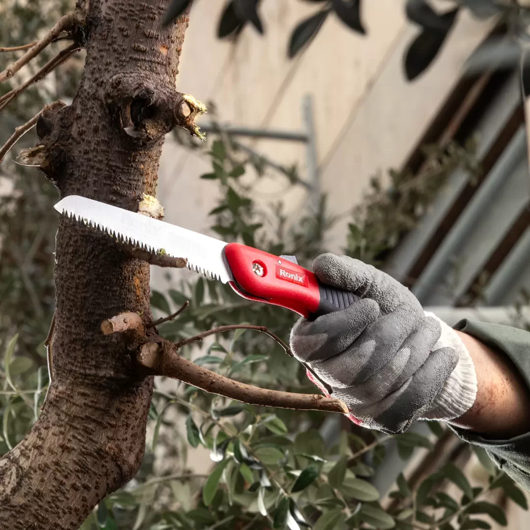 اره باغبانی تاشو 15 سانتیمتری RH-3608 رونیکس، با ایمنی بالا، وزن سبک و قابل حمل طراحی شده و دارای اتصالات قوی بین دسته و تیغه است.