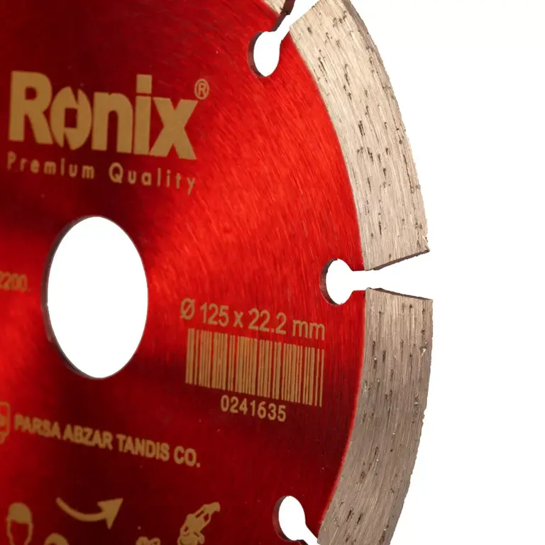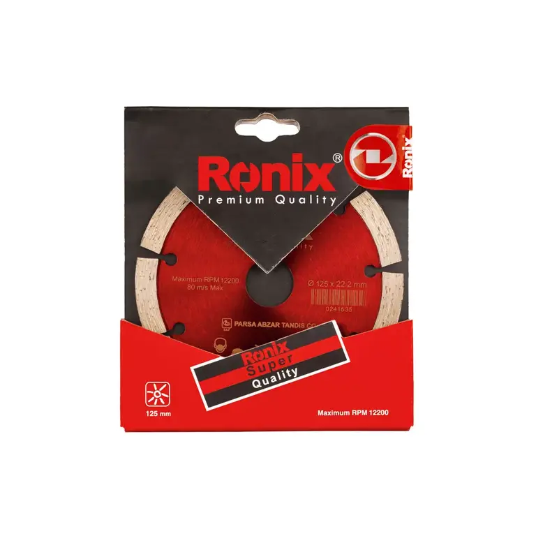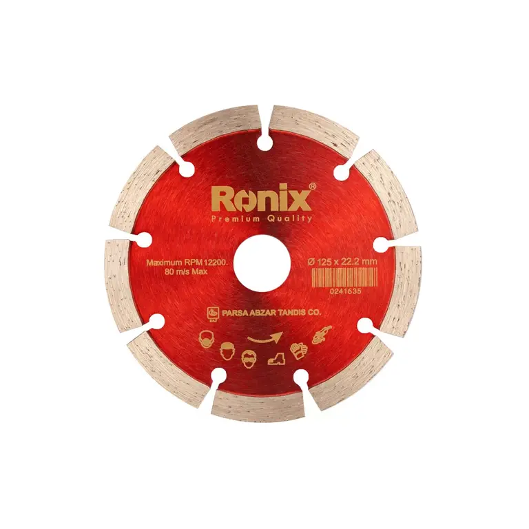 صفحه گرانیتبر 125 میلی متری رونیکس تحت عنوان کد محصول RH-3509، بر اساس استاندارد TUV (نظارت بر سلامت کالا برای محیط زیست) و CE اروپا ساختهشده است . این صفحه سنگ گرانیتبر با روش Hot Press تولید شده که باعث بالا رفتن مقاومت آن در برابر فشار حاصل از کار بر سطوح متراکم میشود.از این صفحه برای برش انواع سنگها به خصوص سنگ گرانیت که عموما در نمای ساختمان بکار برده می شود استفاده میشود. به علاوه سگمنت بلند 10 میلیمتری در کنار تیغه الماسهای آن برشکاری را برای کاربر راحتتر میکند. حداکثر سرعت این صفحه 80 متر بر ثانیه بوده و بیشترین سرعت چرخشی که برای آن در نظر گرفته شده است 12200 دور در دقیقه است. توجه داشته باشید که در هنگام استفاده از این صفحه سرعت دستگاه شما نباید بیش از این مقدار باشد.همان طور که پیش از گفته شد قطر این صفحه 125 میلیمتر است و از این صفحه میتوان جهت برشهای خشک و تر استفاده کرد. رونیکس تا کنون گستره ای وسیع و متنوع از ابزارآلات، متعلقات و قطعات گوناگون تولید کرده است که صفحات گرانیتبر نمونهای از متعلقات ابزارآلات برشی این شرکت هستند. به همین ترتیب این برند توانسته است، پیوندی عمیق بین علم و بازار برقرار کرده و با عرضه محصولات با کیفیت، نیاز فعالان صنایع مختلف را پوشش دهد.