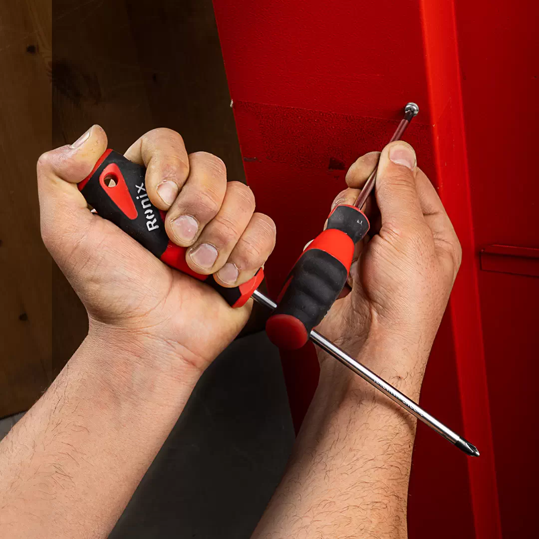 پیچ گوشتی دسته TPR ضربه‌خور چهارسوی رونیکس مدل RH-2971 با نوک مغناطیسی سخت‌کاری‌شده و ضد زنگ، میله محکم از جنس آلیاژ کروم وانادیوم و دسته ارگونومیک TPR تولید می‌شود تا نیازهای شما را به بهترین شکل ممکن پوشش دهد.