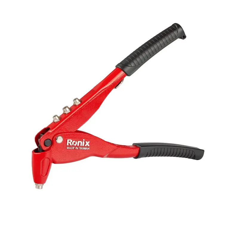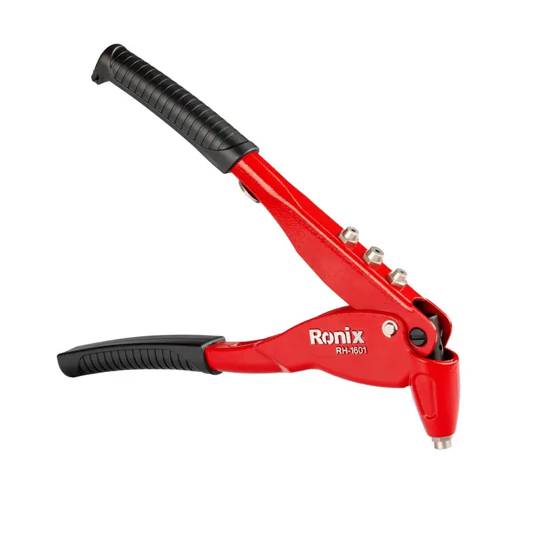 انبر پرچ RH-1601 رونیکس از پرچ های دستی با ساختاری محکم و بادوام است که گزینه ای ایده آل برای انجام پرچ کاری های کلی، ساخت ناودان، مبلمان، بوم نقاشی و … می باشد. این ابزار برای کار با میخ پرچ های 2.4، 3.2، 4.0 و 4.8 میلی متری طراحی شده و می تواند تمام نیازهای شما برای پرچ کاری را پوشش دهد.از ویژگی های انبر پرچ اپتیما برخورداری از سه سری بر روی دسته آن است که باعث شده این ابزار قابلیت پرچ کاری با سه نوع پرچ آلومینیومی، فولادی و استیل را داشته باشد. همچنین این دستگاه دارای نازلی بلند است که انجام کار در مکان های تنگ و باریک که به سختی قابل دسترس هستند را فراهم می کند.مدل RH-1601 رونیکس مجهز به بدنه ای تمام فولادی فورج شده با استحکام بالاست که با برخورداری از دسته ای با روکش PVC ضد لغزش و ارگونومیک سهولت کاربری های طولانی مدت را افزایش می دهد.