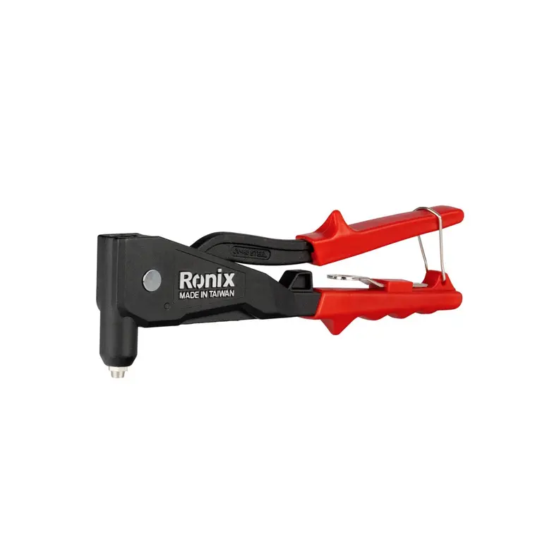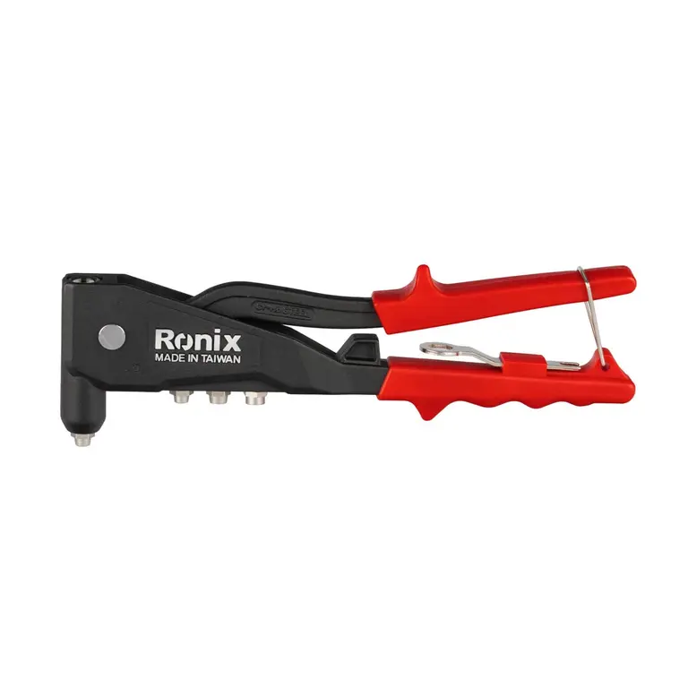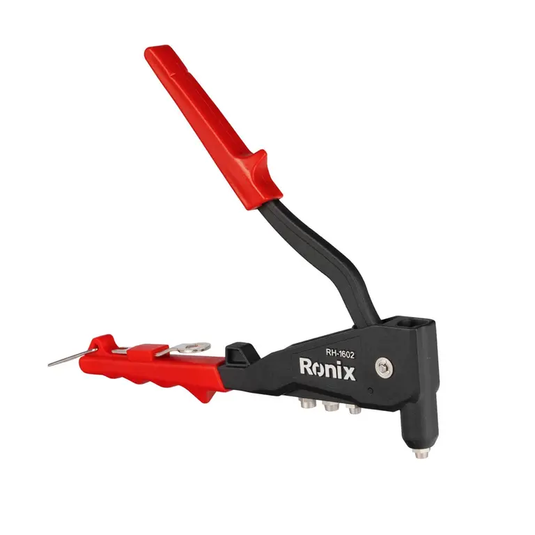 انبر پرچ RH-1602 رونیکس دارای ساختاری محکم و بادوام و بدنه ای از جنس فولاد فورج شده است که گزینه ای ایده آل برای انجام پرچ کاری های کلی، ساخت ناودان، مبلمان، بوم نقاشی و … می باشد. این ابزار برای کار با میخ پرچ های 2.4، 3.2، 4.0 و 4.8 میلی متری طراحی شده و می تواند تمام نیازهای شما برای پرچ کاری را پوشش دهد.از ویژگی های این انبر پرچ برخورداری از سه سری بر روی قسمت جلویی آن است که باعث شده این ابزار قابلیت پرچ کاری با سه نوع پرچ آلومینیومی، فولادی و استیل را داشته باشد. همچنین این دستگاه دارای نازلی بلند است که انجام کار در مکان های تنگ و باریک که به سختی قابل دسترس هستند را فراهم می کند.مدل RH-1602 رونیکس دارای یک ضامن فلزی در انتهای دسته است که باعث شده تا در هنگامی که از آن استفاده نمی شود، به راحتی انبر را قفل کرد. همچنین یک آچار به همراه انبر پرچ سوپر رونیکس عرضه می شود که از آن برای تعویض سری ها استفاده خواهد شد.