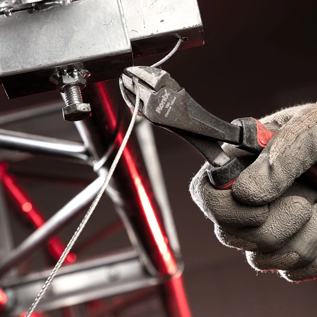 سیمچین RH-1237 رونیکس مجهز به تیغههای تیزی است که با کمک آن میتوانید مقاطع سیم را با دقت بسیار بالا برش بزنید.