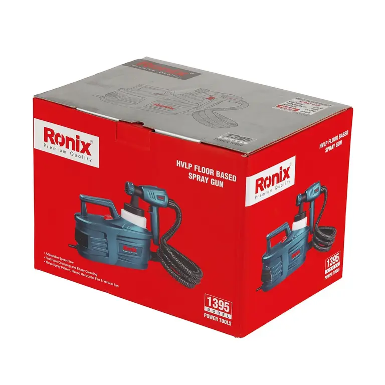 مجموعه عملکرد نازل و موتور پرقدرت پیستوله‌ برقی 1395 رونیکس، حداکثر جریان 1000 میلی‌لیتر بر دقیقه را با ویسکوزیته‌ 100 دین بر ثانیه ایجاد می‌کند. دکمه کنترل جریان در این پیستوله برقی، میزان خروجی مواد را با توجه به پروژه مورد نظر تنظیم می‌کند. با وجود سیستم سریع و آسان تعویض فیلتر در این پیستوله، می‌توانید این کار را به راحتی و ظرف مدت‌زمان کمی انجام دهید.