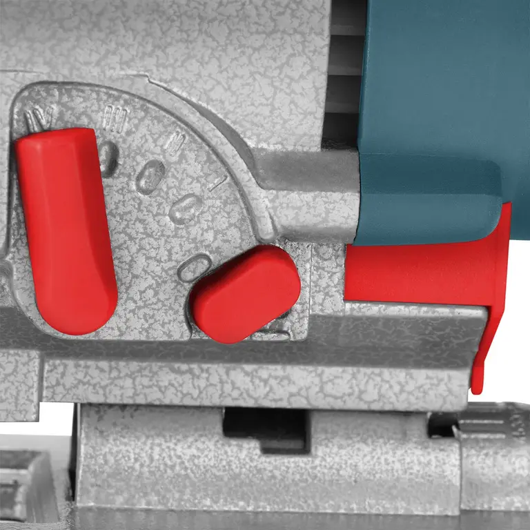 تیغه این دستگاه، مدل T شنک است. امروزه اکثر شرکتهای سازنده ابزارآلات از تیغههای T شنک به عنوان تیغههای استاندارد استفاده میکنند. نوع دیگر تیغهها، U شنک هستند؛ اما تیغههای T شنک به علت تعویض سریعتر، راحتتر و بدون نیاز به ابزار، بسیار پرطرفدارتر هستند.این ابزار قدرتمند قابلیت برش تا عمق 60 میلی متر در چوب و تا 10 میلی متر در فلز را دارد. همچنین درصورت نیاز به برشهای زاویهای در چوب، میتوانید بهترین برشهای مورب را در 4 زاویه متفاوت انجام دهید.