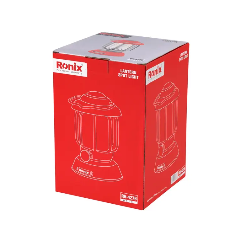 نورافکن فانوسی RH-4276 رونیکس، نور کافی را برای فعالیت در تاریکی فراهم میکند. روشنایی آن قابل تنظیم است و برای روشنکردن فضای خانه، فضاهای باز، تعمیر خودرو و نوردهی در کمپینگ طراحی شده است. این ابزار روشنایی حرفهای 6 وات، شار روشنایی 350 لومن را تامین کرده و مجهز به 4 عدد چراغ الایدی و 16 اسامدی با دامنه روشنایی 15 متر است. بدنه ترکیبی این ابزار از پلاستیک و فلز موجب وزن سبک، در عین حال مقاومت بالا و قابلیت حمل آسانتر آن میشود. با وجود آویز بالای این نورافکن، میتوانید آن را در چادر یا هر مکان دلخواه آویزان کنید.