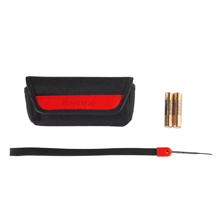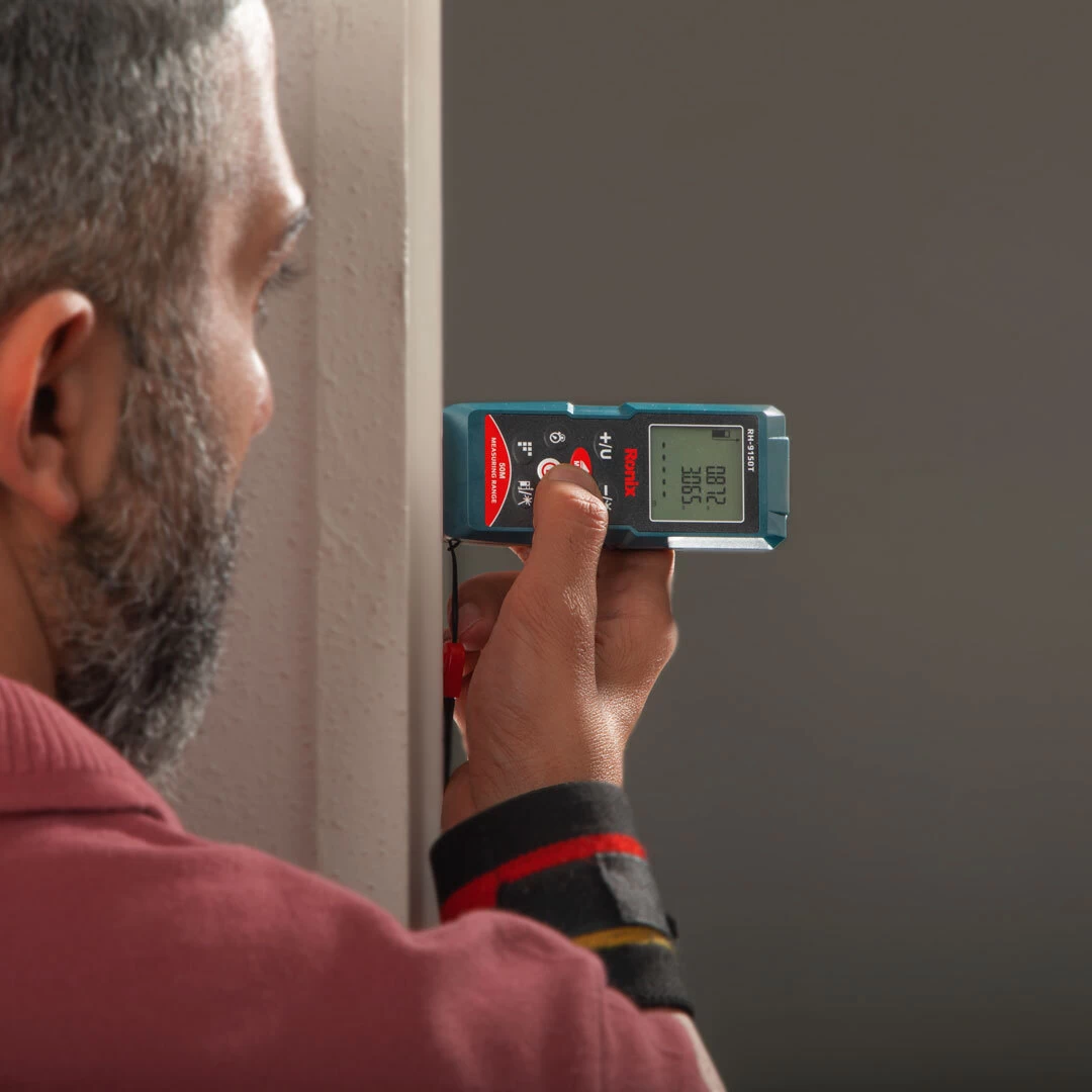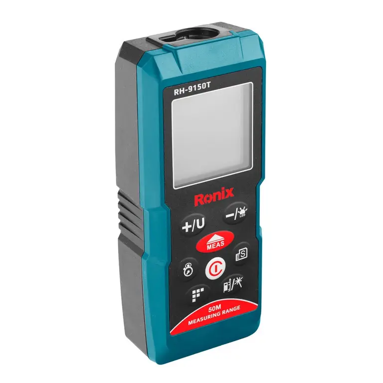 متر لیزری 50 متری رونیکس، با محدوده برد اندازه گیری از 0.05 تا 50 متر، دقت اندازه گیری 1.5± میلی متر و حداکثر تفکیک0.001 متر، امکان انجام عملکردهای کاربردی تکمیلی اندازه گیری از جمله محاسبه مساحت، محاسبه حجم و محاسبات فیثاغورثی را داراست. به علاوه، به خاطر داشتن قابلیت اندازه گیری متوالی و لحظه ای، می توان از آن برای محاسبات جابجایی نیز بهره برد. سرعت اندازه گیری این دستگاه 0.5 ثانیه است و دارای تایمر مخصوص زمان بندی انجام محاسبات می باشد.این دستگاه سبک و کم حجم، دارای صفحه کلید روان با عمر و دوام بالا و نمایشگری با پس زمینه نورانی است.انرژی متر لیزری رونیکس مدل RH-9150T از دو باتری AAA تامین می گردد و در بسته بندی آن نیز دو عدد از این باتری قرار داده شده است که قابلیت عملکرد تا 10000 مرتبه را داراست. این دستگاه دارای قابلیت خاموش شدن خودکار است.لیزر متر لیزری 50 متری رونیکس مدل RH-9150T، از نوع طول موج 635 نانومتری Classll است و توانایی اندازه گیری بر حسب واحدهای رایج متر، فوت و اینچ را با دقت و سرعت زیاد داراست.این دستگاه 103 گرمی با ابعاد 116×48×31 میلی متری خود، ساخت کشور تایوان بوده و با گارانتی 12 ماهه شرکت رونیکس به کاربران ارائه می شود.