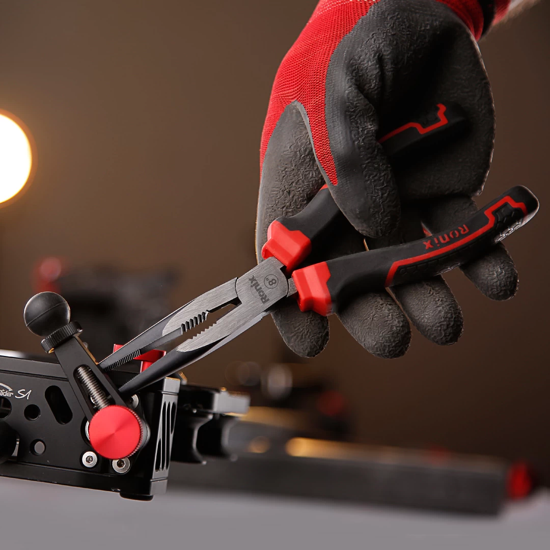 حتما برای شما پیش آمده که با محیطهای کوچک و شلوغ یا حفرههایی طرف بودید که دسترسی به سیمها با دست یا انبردست هم ممکن نبوده است. در این مواقع باید از ابزاری به نام دم باریک استفاده کنید که دارای نوک بلند و باریک است. دم باریک مکسی RH-1366 رونیکس، از جنس کربن استیل سختکاریشده بوده و دارای دستههای ارگونومیک برای جلوگیری از خستگی دستها است.
