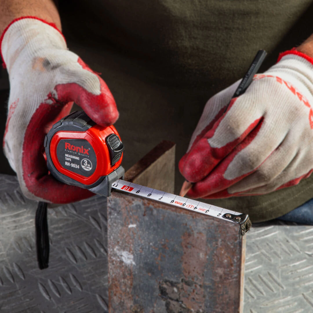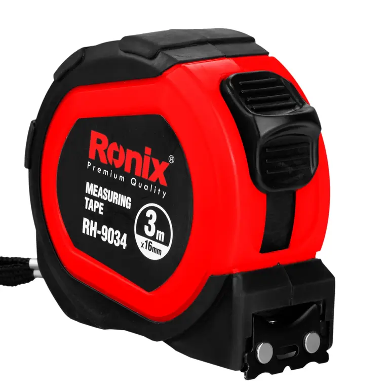 متر RH-9034 مجهز به تیغه یا نوار 3 متری است که با استفاده از پوشش نایلونی جهت محافظت بیشتر در برابر شرایط مختلف روکش شده است. بدنه پلاستیکی متر 3 متری RH-9034 از مقاومت بالایی در برابر ضربه برخوردار است که عمر طولانی این ابزار دستی را تضمین می کند. از دیگر ویژگی های این متر برخورداری از سیستم قفل با استفاده از کلید تعبیه شده بر روی بدنه است که باعث کاربری آسان آن شده است. گیره فلزی در قسمت پشت مدل RH-9034 از دیگر امکانات این متر است که جهت نصب بر روی لباس کار طراحی شده است. این ابزار مجهز به چاپ یک طرفه بوده و درجه بندی آن بر اساس سانتی متر می باشد. همچنین قلاب نوار 3 متری RH-9034 دارای دو قسمت آهنربایی است که استفاده از آن را راحت تر کرده است.