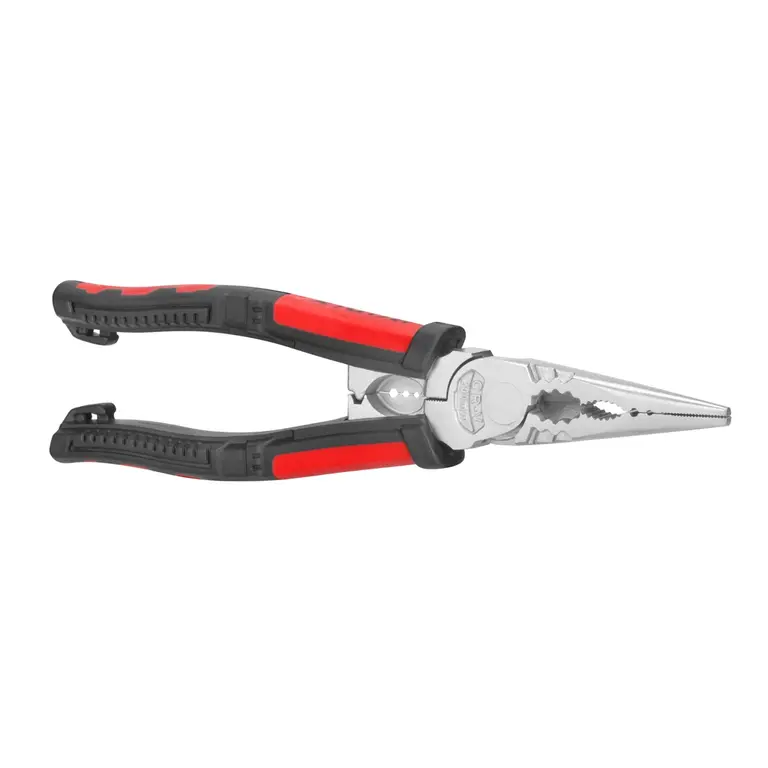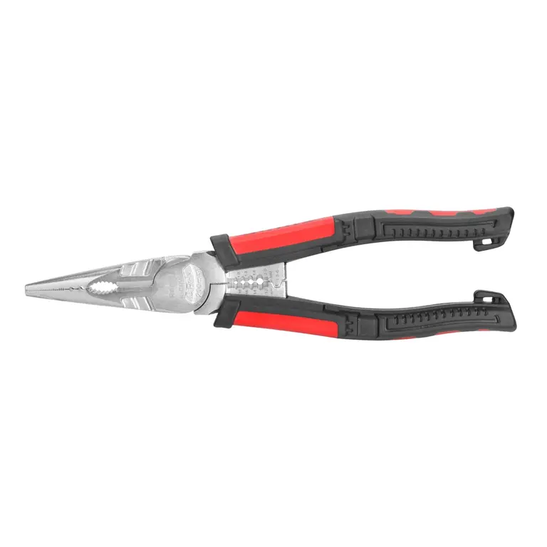 دم باریک الکترونیک 8 اینچی چندکاره RH-1393 رونیکس، یک ابزار کارآمد چندمنظوره برای ثابت نگه‌داشتن، گرفتن، خم‌کردن و برش سیم‌های نرم و سخت است. این ابزار کاربردهای گسترده‌ای در تعمیرات و مونتاژ صنایع الکترونیکی و برش خطوط قدرت(سیم و کابل‌های برق فشار قوی)دارد. RH-1393 رونیکس برای لخت‌کردن سیم‌ها تا قطر 2.0 میلی‌متر، برش کابل و سیم تا قطر 2.6 میلی‌متر و پرس‌کردن سر سیم‌ها تا سطح مقطع 6 میلی‌متر مربع ایده‌آل است.