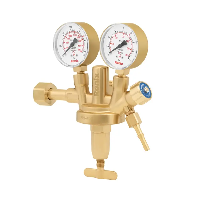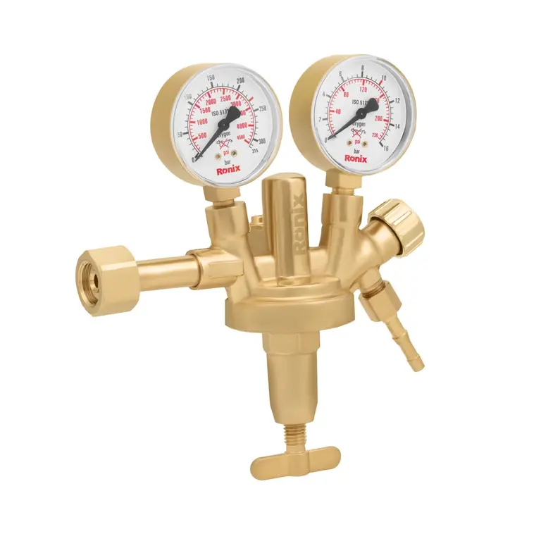 مانومتر اکسیژن رونیکس دارای دو گیج برای نمایش دقیق فشار ورودی و خروجی، که حداکثر فشار ورودی را تا 315 بار و فشار خروجی را تا 16 بار نشان می‌دهند. بدنه این مانومتر از آلیاژ برنج با کیفیت بالا ساخته شده که استحکام و دوام بالایی را در حین کاربری فراهم می‌کند.