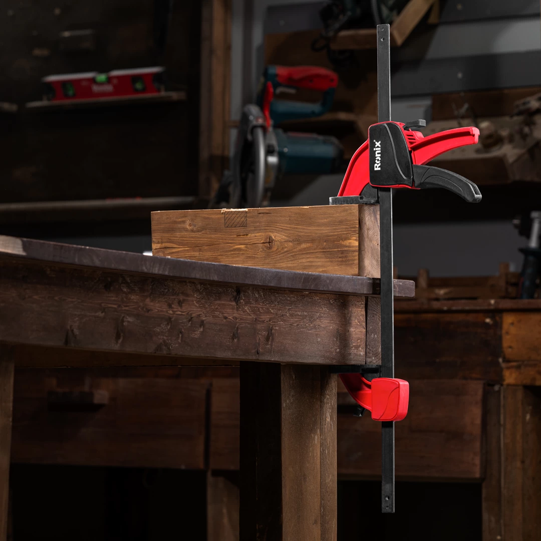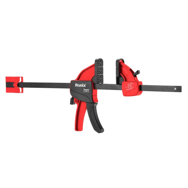 پیچ دستی سوپر RH-7550 مجهز به بدنه ای از فولاد سخت کاری شده با مقاومت بالا می باشد که از خم شدن و انحنای ابزار در حین کارهای سخت جلوگیری می کند. این پیچ دستی به یک ماشه آزاد کننده مجهز شده که مناسب تنظیم فک در موقعیت های مختلف است. فک های مدل RH-7550 رونیکس با روکش TPR پوشیده شده اند و دارای سطح اتکای مستحکمی هستند که از قطعه کار در برابر آسیب محافظت می کنند. به علاوه با قرار دادن فک ثابت در طرف مخالف میله می توان از این پیچ دستی به عنوان یک نگهدارنده کارآمد استفاده کرد.پیچ دستی فشاری سوپر RH-7550 از حداکثر تحمل فشار 135 کیلوگرم و ظرفیت گیره 50 سانتی متر برخوردار است. این ابزار دستی به دسته ارگونومیک ضد لغزش مجهز شده که باعث افزایش تسلط و گرفتن مطمئن ابزار در دست کاربر می شود. امکان تنظیم پایه از دیگر ویژگی های این پیچ دستی سوپر 50 سانتی متری است که پشتیبانی بیشتری را از قطعه کار فراهم می کند و گیره را قادر می سازد به صورت قائم بر روی سطح کار قرار گیرد.