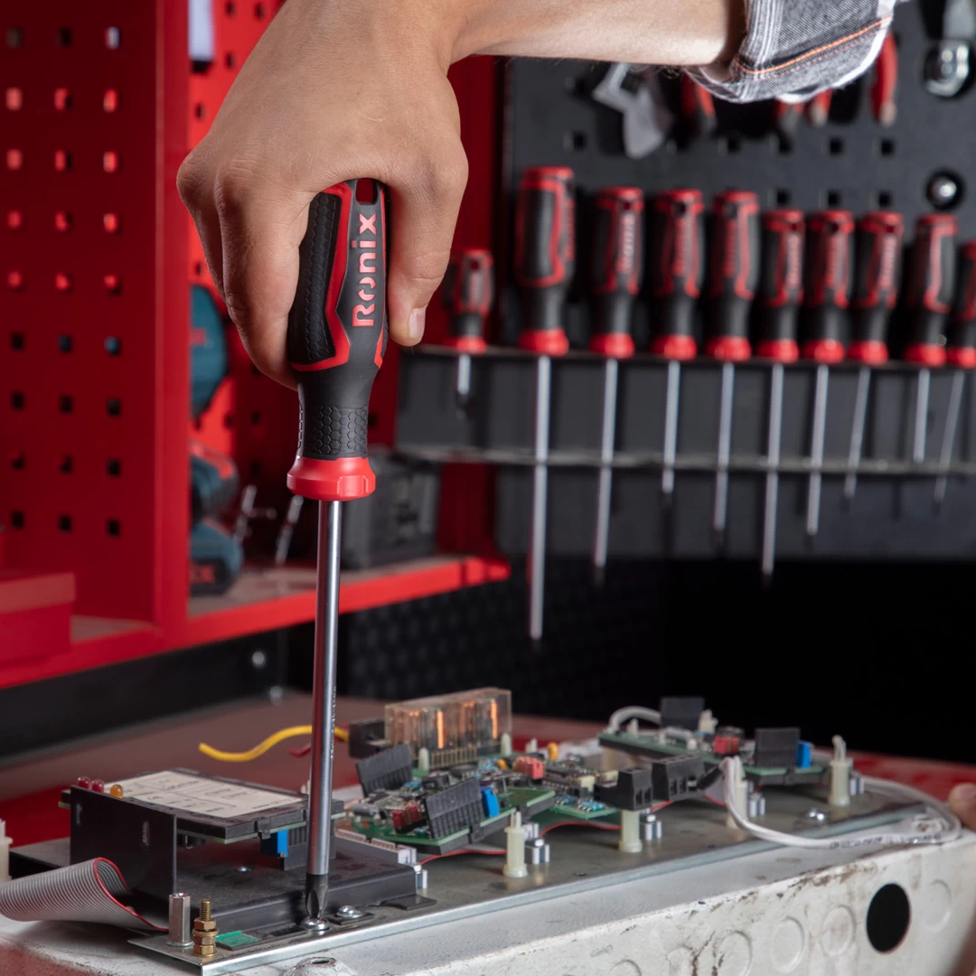 دسته با روکشی از جنس پلاستیک TPR برای کنترل بهتر ابزار و با طراحی حرفه‌ای رونیکس؛ این دسته، تعادل بین سرعت و گشتاور را در اتصالات مختلف ایجاد می‌کند.