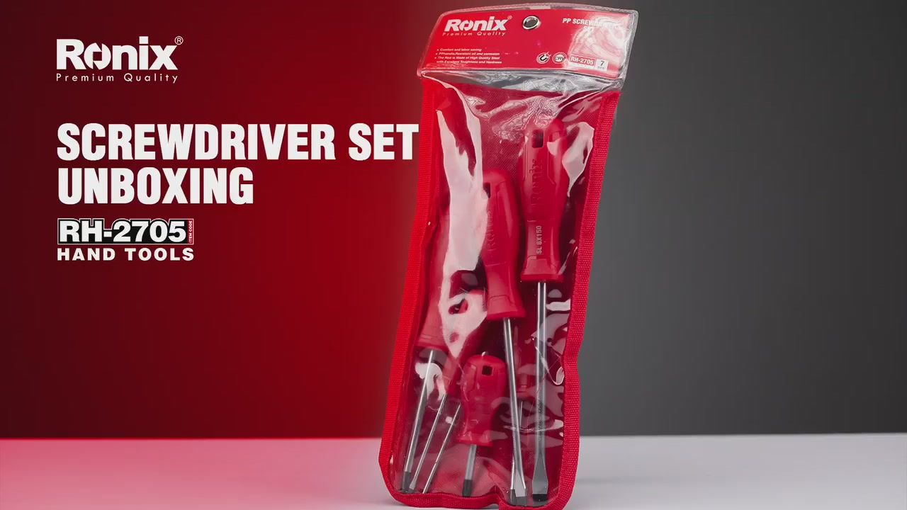 مجموعه 7 عددی پیچ گوشتی 2705 رونیکس از 3 عدد پیچ گوشتی دوسو و 4 عدد پیچ گوشتی چهارسو تشکیل شده است. پیچ گوشتیهای این مجموعه دارای میلههای فولاد آلیاژی با کیفیت بالا هستند؛ نوک آنها آهنربایی یا مغناطیسی است و با عملیات حرارتی سختکاری شده است.