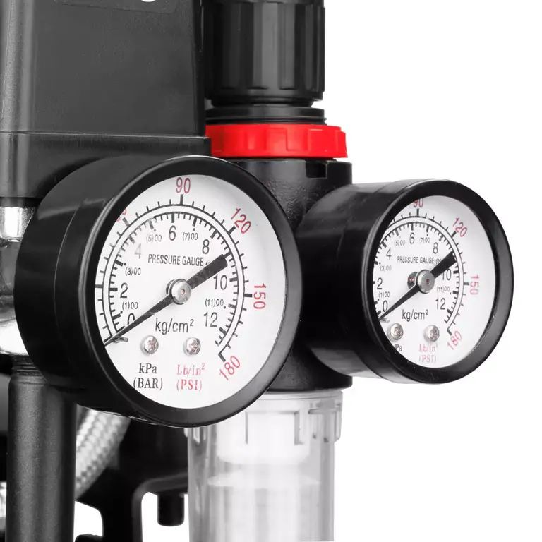 یک رگلاتور در خروجی مخزن که فشار را برحسب نیاز مصرفکننده تنظیم کرده و به بهبود عملکرد ابزار بادی کمک میکند.