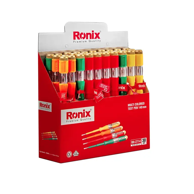 هر 8 قطعه فازمتر شامل لبه، عایق، محافظه، مقاومت، گیره، لامپ، فنر و پیچ باید درست کار کنند تا ابزار، عملکرد مطلوبی را به کاربر ارائه دهد. رونیکس در طراحی فازمتر RH-2714 به این موضوع توجه ویژهای داشته و آن را با کیفیتی متمایز روانه بازار ابزار ایران کرده است. بدنه این محصول با پلاستیک ضد لغزش ABS عایق شده تا ایمنی کاربر حفظ شود.